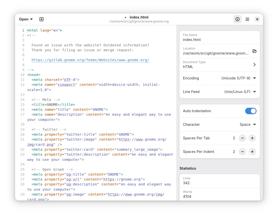 文本编辑器已针对 GNOME 48 进行了刷新,具有更简洁、更集中的界面。更新后的设计引入了精简的标题栏,将选项合并到一个菜单中,以提供更直观的体验。