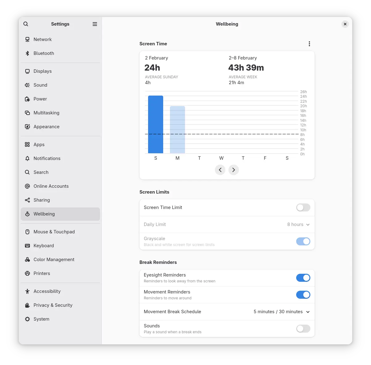 GNOME 48 的另一个令人兴奋的增强功能是推出了新的数字健康功能。这些功能旨在帮助用户保持健康的计算习惯,包括